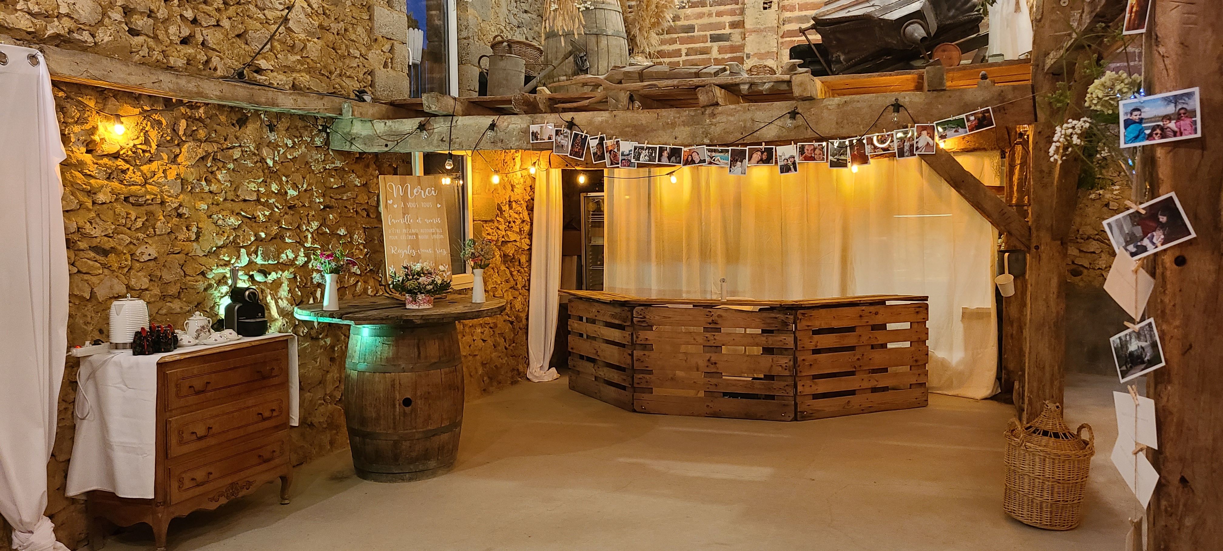 Un endroit superbe pour faire la fête ds un cadre bucolique et calme de plus déco fait avec goût bravo aux propriétaires