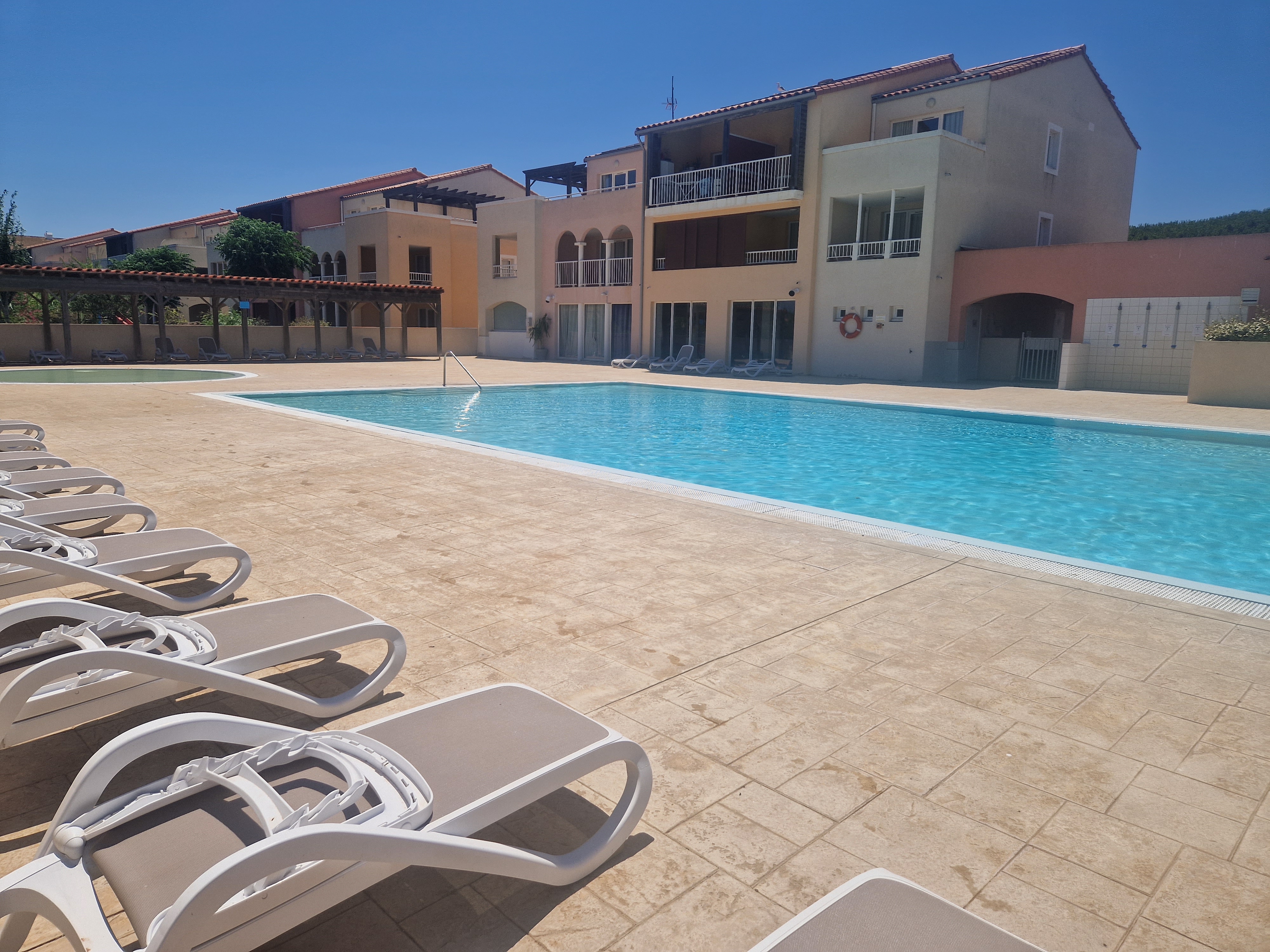 Endroit calme fin Juin. Idéal pour se reposer. Appartement à rafraîchir...un peu dans son jus... mais endroit chouette. Attention, du monde exterieur squatte la piscine.. d'ailleurs fermeture à 17h00 un peu dommage avec cette chaleur, cela aurait été bien jusqu'à 19h00.